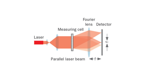 In a conventional design, the Fourier lens is situated between the detector and the measuring cell which is penetrated by a wide, parallel laser beam.