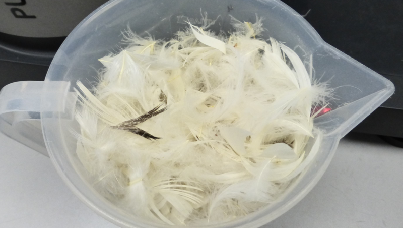 Ducks and geese make up the majority of the animals used for feather and down production. About 80 % of down feathers are imported from East Asia. The world's largest producer of goose down is China, followed by Hungary, Ukraine and Poland. Down is a layer of fine feathers which are under the harder outer feathers of the animals. Down is a fine thermal insulator and padding used for example in jackets, bedding, pillows and sleeping bags. To prevent the development of allergies, crushed feathers are checked for harmful substances that may be present in the form of bacteria or fungi due to contamination.