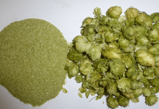 Hop cones before and after the comminution