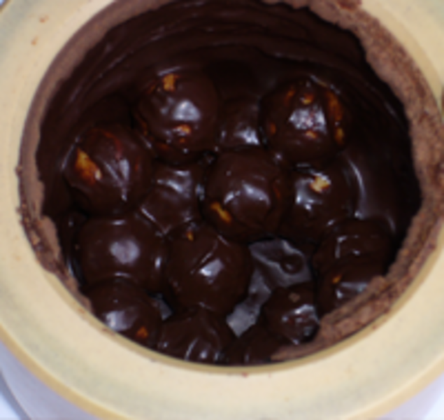 Here you must work with higher temperatures. For this we would recommend a zirconium oxide mortar bowl and pestle. The mortar bowl and also the pestle are to be warmed inside the heating cabinet to 50 °C. The retained energy is sufficient to produce in the 10 minute process period a homogenous mass capable of flowing. Then distinguished palates decide in regards to the quality of the supplied cocoa beans the further use.