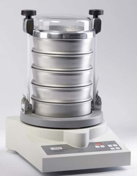 And exactly here is the second key advantage of this configuration of the Vibratory Micro Mill PULVERISETTE 0: through the utilization of an additional configuration, in this case analysis sieves with a diameter of 200 mm, the basic instrument can be quickly transformed into sieve shaker. This means 2 different possible applications can be combined in a cost-efficient manner: the gentle disagglomeration of a material and a sieve analysis.
