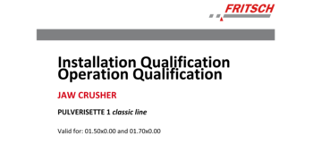 IQ/OQ documentation (questionnaire format - implementation not included); for the independent utilization for the support of instrument qualification in the quality management system for the Jaw Crushers PULVERISETTE 1 classic line, Model I and II.